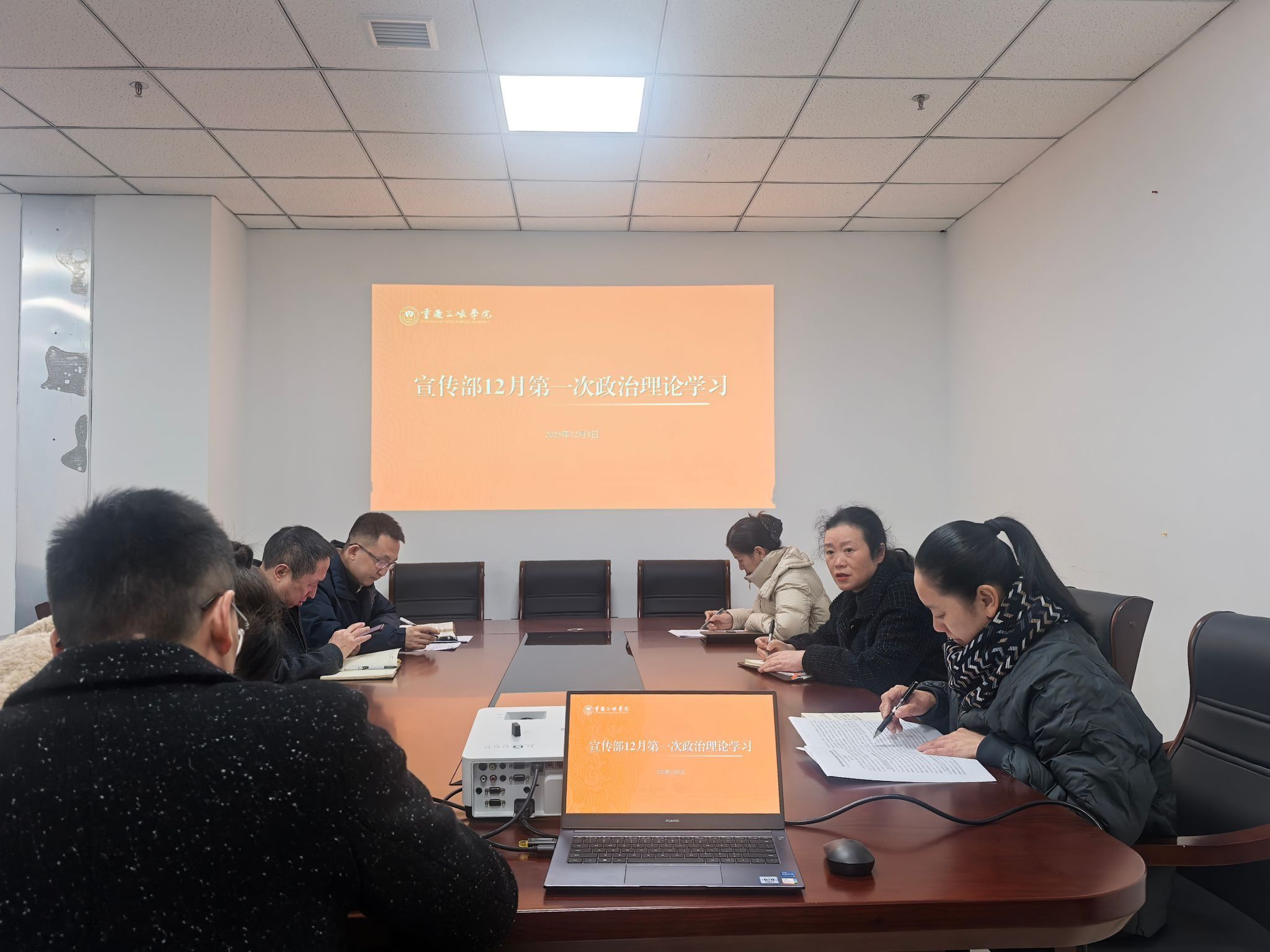 12月3日,宣传部在科技楼404室组织12月第一次政治理论学习会。会议聚焦习近平总书记重要讲话精神和市委六届八次全会部署,通过集中领学与交流研讨,推动理论学习走深走实。会上,向春荣、赵丹、丁飞、谭平四位同志分别领学习近平总书...